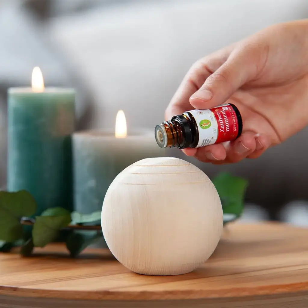 The Magical Moment Essential Oil Blend combines Douglas fir, silver fir, laurel, cedar and Benzoe Siam into an earthy-woody fragrance that brings warmth, forest strength and comforting harmony. The resinous sweetness of benzoin meets the grounding clarity of conifer woods, creating a moment of balance, inner calm and natural warmth. This scent supports emotional stability throughout the day and creates a cosy atmosphere in living and sleeping spaces.