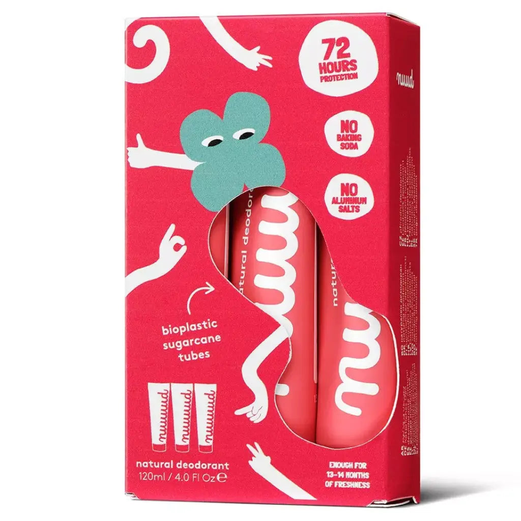 Der xXL Pack | Natürliches Deodorant von nuud ist gemacht für alle, die sich langfristig um Achselfrische keine Gedanken mehr machen wollen. Drei große Tuben à 40 ml versorgen dich mit über 60 Wochen zuverlässiger Frische. Dieses natürliche Deodorant ohne Aluminium wirkt nicht nur einen Tag, sondern mehrere Tage pro Anwendung – ganz ohne die Haut zu blockieren.
